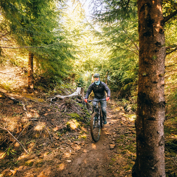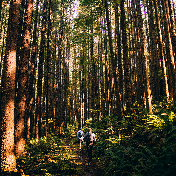 After lunch, another spurt of energy resurfaced, and the group was excited to get back to the trails. Mountain bikes replaced hiking boots as they enjoyed an afternoon under the guidance of EXP’s expert riders. The group tackled a range of terrain, from smooth paths to more technical descents. Surrounded by Sitka spruce and ferns in the afternoon light, the ride was the perfect end to the day.