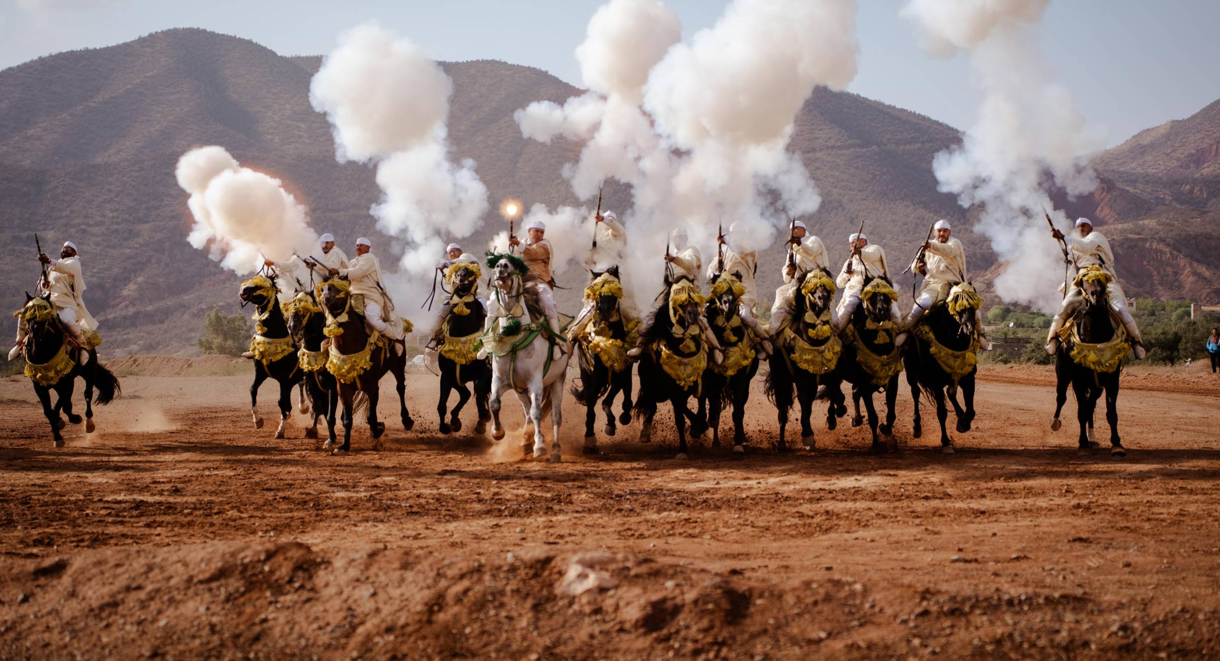 For the evening, a Fantasia festival, also known as Tbourida, was arranged for the group to enjoy not only a birthday celebration but also the region’s cultural heritage in the comfort of the Olinto grounds. The spectacular traditional equestrian performance featured beautifully adorned horses and riders, completing outstanding synchronized charges, accompanied by a candlelit gourmet Moroccan feast.
