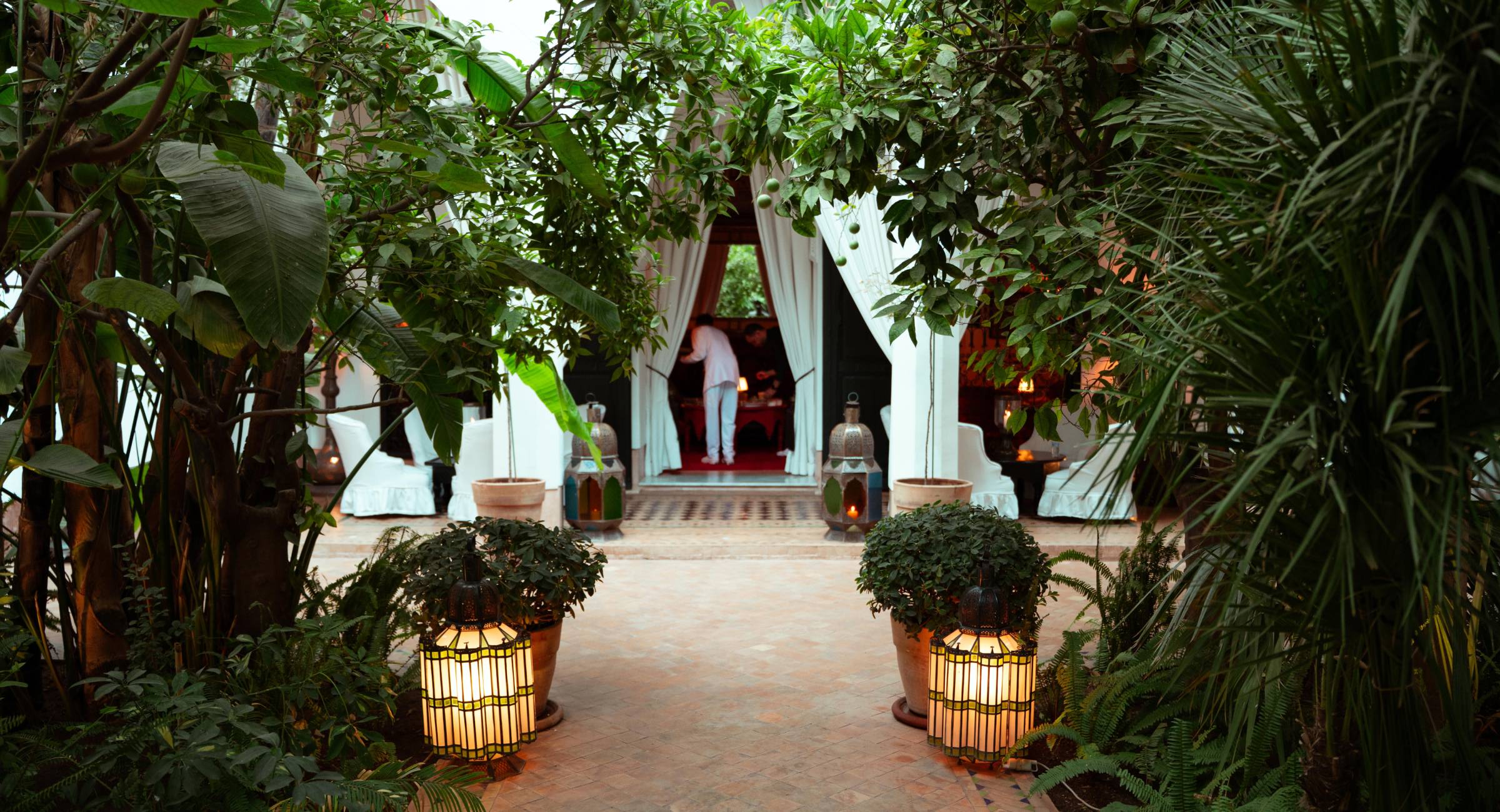 That evening, the three couples were taken to L’Hotel Marrakesh, a privately owned 19th-century riad located in the heart of the Medina just a stone’s throw from Jemaa el-Fna Square. Once part of a palace complex, the riad features six spacious suites arranged around a picturesque garden and swimming pool.